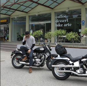 אוהב לרכוב על האופנוע שלו.